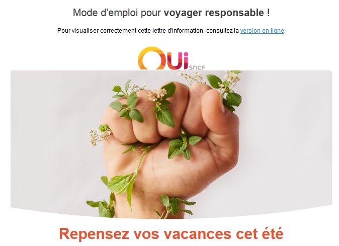 Contenu de la campagne de mailing : source OUI.sncf