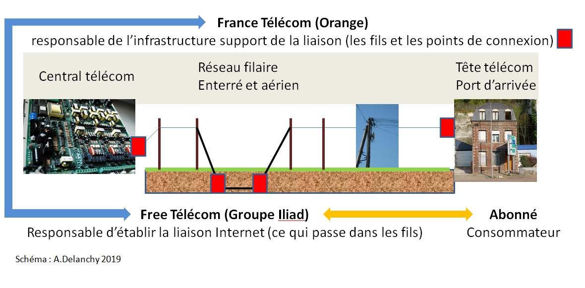 Ce dernier se met en relation avec le responsable de l’infrastructure (ici Orange – France Télécom) à qui il paye aussi un accès à cette infrastructure, son entretien et son maintien à l’état opérationnel.