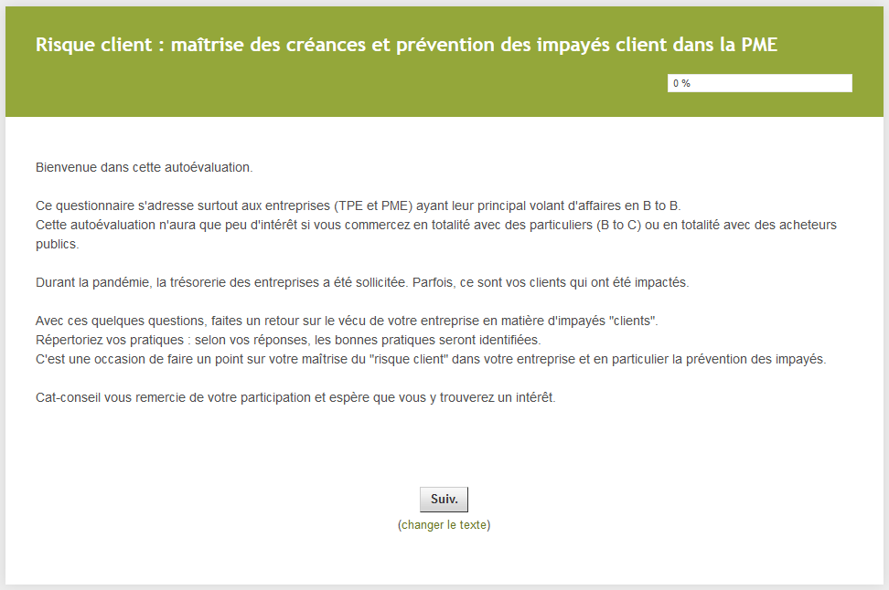 Vous pouvez partager cet article, ou le lien menant au questionnaire d’autoévaluation des pratiques de management des risques clients en TPE et PME.
