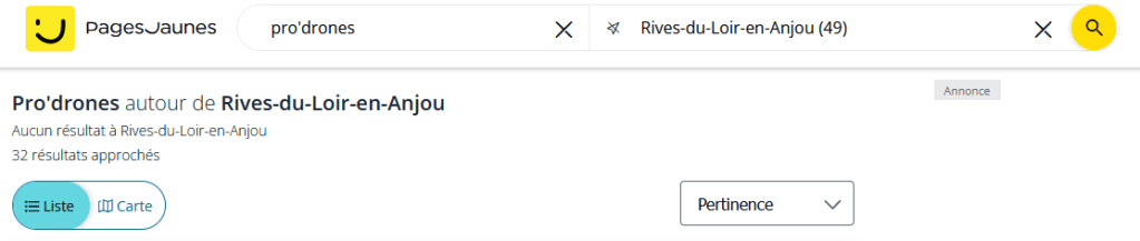 Là encore, rien de concluant : Pro’drones est introuvable, écrit de différentes façons. Aucun résultat pertinent avec drones, vision aérienne, photographe, vidéosurveillance, vidéo surveillance, vidéo surveillance installation..