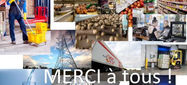 Alors que sont remerciés, très régulièrement et à juste titre, les personnels de santé des hôpitaux, du SAMU, les pompiers, je voudrais pouvoir remercier ceux qui sont trop souvent sous le radar. Je pense notamment à : Personnels des magasins d'alimentation de toutes surface qui nous permettent d'acheter à manger (une Nation confinée, ça mange … Lire la suite Aux acteurs qui sont sur le terrain.